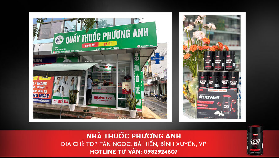 Việc lựa chọn sản phẩm bổ sung cho nam giới ngày nay không chỉ dừng ở thành phần, mà còn phụ thuộc rất lớn vào địa chỉ mua uy tín và sự tư vấn phù hợp. Tại khu vực Bình Xuyên (Vĩnh Phúc), Nhà thuốc Phương Anh là điểm đến quen thuộc của nhiều khách hàng khi tìm mua các sản phẩm chăm sóc sức khỏe chính hãng, trong đó có Oyster Prime.