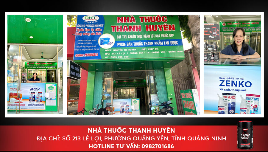 Nhà thuốc Thanh Huyên là địa chỉ uy tín tại Quảng Ninh, nơi khách hàng có thể tìm mua Oyster Prime chính hãng và nhận tư vấn trực tiếp từ dược sĩ. Việc sản phẩm được phân phối tại nhà thuốc giúp người dùng yên tâm hơn về nguồn gốc, chất lượng cũng như cách sử dụng phù hợp với từng thể trạng.